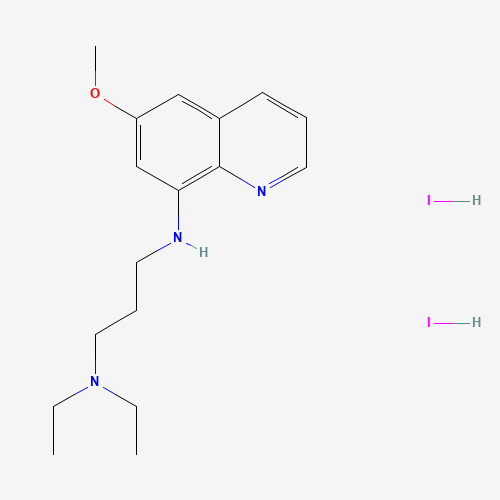 - Synonyms:Plasmocid dihydriodide;304-24-5;Plasmocid dihydroiodide;8-((3-(Diethylamino)propyl)amino)-6-methoxyquinoline dihydroiodide;DTXSID40184479;Quinoline, 8-((3-(diethylamino)propyl)amino)-6-methoxy-, dihydriodide;1,3-Propanediamine, N,N-diethyl-N'-(6-methoxy-8-quinolinyl)-, dihydriodide;6-methoxy-8-(3-diethylamino-propylamino)-quinoline dihydroiodide