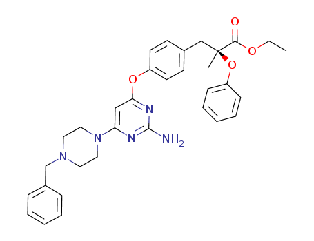 - Synonyms:S-3-{4-[2-amino-6-(4-benzyl-piperazin-1-yl)-pyrimidin-4-yloxy]-phenyl}-2-methyl-2-phenoxy-propionic acid ethyl ester