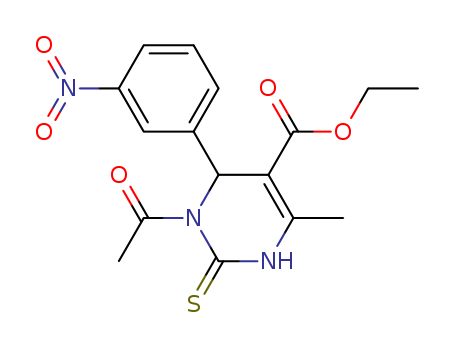 - Synonyms:SALOR-INT L254169-1EA;ET 3-AC-6-ME-4-(3-NITRO-PH)-2-THIOXO-1,2,3,4-TETRAHYDRO-5-PYRIMIDINECARBOXYLATE;ethyl 1-acetyl-4-methyl-6-(3-nitrophenyl)-2-thioxo-1,2,3,6-tetrahydropyrimidine-5-carboxylate
