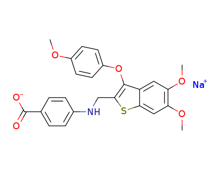 Sodium 4-({[5,6-dimethoxy-3-(4-methoxyphenoxy)benzo[b]thiophen-2-yl]methyl}amino)benzoate(256452-70-7)