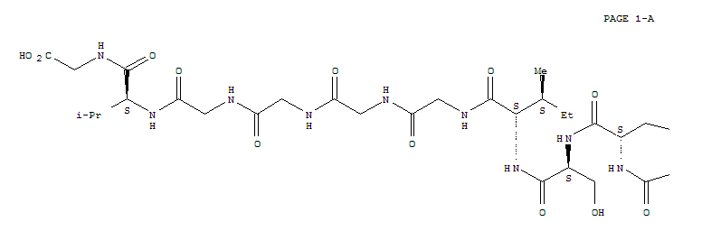 - Synonyms:Sperm-activatingpeptide H 1 (Hemicentrotus pulcherrimus egg jelly coat),3-L-serine-4-L-isoleucine-5-glycine-; Glycine,N-[N-[N-[N-[N-[N-[N-[N-(N-glycyl-L-phenylalanyl)-L-seryl]-L-isoleucyl]glycyl]glycyl]glycyl]glycyl]-L-valyl]-