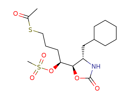 - Synonyms:Thioacetic acid S-[(S)-4-((4S,5R)-4-cyclohexylmethyl-2-oxo-oxazolidin-5-yl)-4-methanesulfonyloxy-butyl] ester