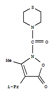 - Synonyms:Thiomorpholine,4-[[3-methyl-4-(1-methylethyl)-5-oxo-2(5H)-isoxazolyl]carbonyl]- (9CI)