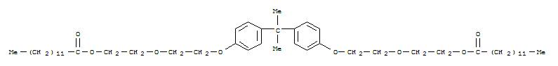 - Synonyms:Tridecanoicacid, (1-methylethylidene)bis(4,1-phenyleneoxy-2,1-ethanediyloxy-2,1-ethanediyl)ester (9CI)