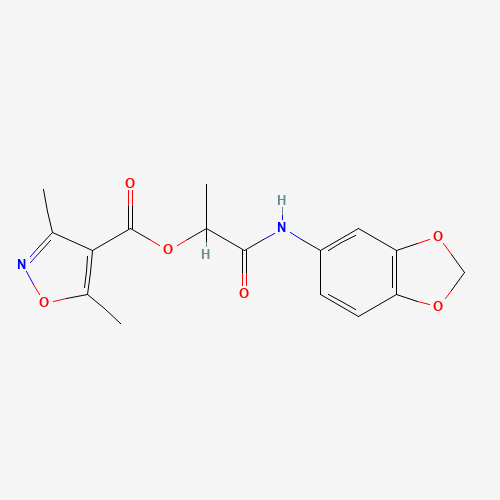 - Name: [1-(1,3-Benzodioxol-5-ylamino)-1-oxopropan-2-yl] 3,5-dimethyl-1,2-oxazole-4-carboxylate