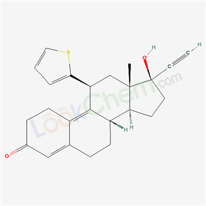 - Synonyms:17-ethynyl-17β-hydroxy-11β-(2-thienyl)-4,9-estradien-3-one;(8S,11S,13S,14S,17R)-17-Ethynyl-17-hydroxy-13-methyl-11-thiophen-2-yl-1,2,6,7,8,11,12,13,14,15,16,17-dodecahydro-cyclopenta[a]phenanthren-3-one;
