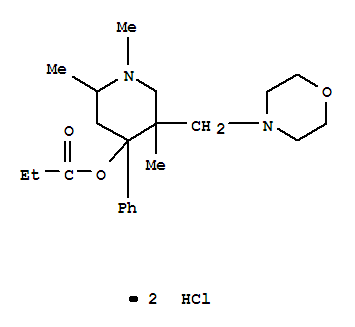 - Synonyms:4-Piperidinol,1,2,5-trimethyl-5-(4-morpholinylmethyl)-4-phenyl-, propanoate (ester),dihydrochloride (9CI); 4-Piperidinol,1,2,5-trimethyl-5-(morpholinomethyl)-4-phenyl-, propionate (ester),dihydrochloride (8CI)