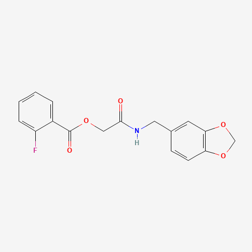 - Name: [2-(1,3-Benzodioxol-5-ylmethylamino)-2-oxoethyl] 2-fluorobenzoate