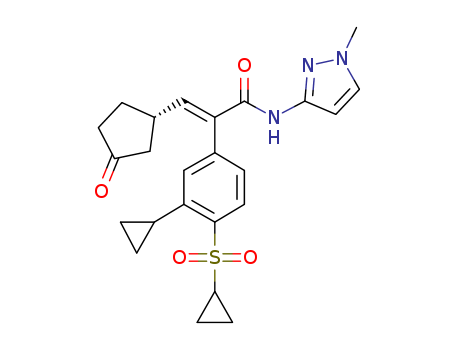 - Synonyms:(2E)-2-[3-cyclopropyl-4-(cyclopropylsulfonyl)phenyl]-N-(1-methyl-1H-pyrazol-3-yl)-3-[(1S)-3-oxocyclopentyl]acrylamide