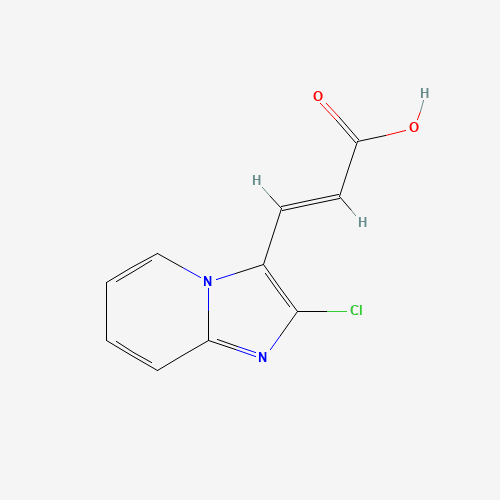- Synonyms:(2E)-3-{2-chloroimidazo[1,2-a]pyridin-3-yl}prop-2-enoic acid;749907-00-4;2055614-36-1;(E)-3-(2-chloroimidazo[1,2-a]pyridin-3-yl)prop-2-enoic acid;3-{2-chloroimidazo[1,2-a]pyridin-3-yl}prop-2-enoic acid;DTXSID60366619;HMS1754E07;AKOS000121715;CS-0218390;CS-0356765;EN300-00828;EN300-34214;SR-01000053302;SR-01000053302-1;3-(2-Chloroimidazo[1,2-a]pyridin-3-yl)acrylic acid;F2124-0515;Z2289799495;(2E)-3-{2-chloroimidazo[1,2-a]pyridin-3-yl}prop-2-enoicacid