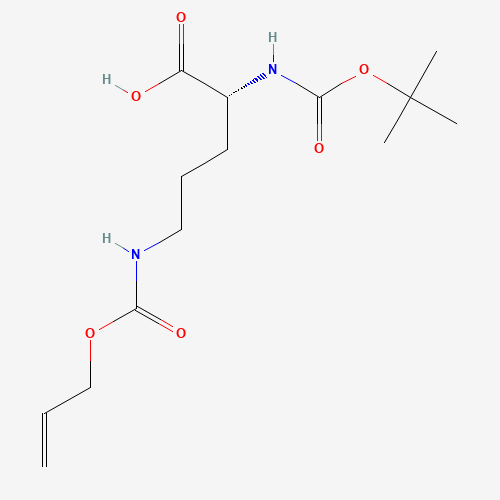 - Synonyms:BOC-ORN(ALOC)-OH;1272755-13-1;(2R)-2-[(2-methylpropan-2-yl)oxycarbonylamino]-5-(prop-2-enoxycarbonylamino)pentanoic acid;N2-Boc-N5-Alloc-D-ornithine;DTXSID701136253;AKOS030212168;CS-W012031;D-Ornithine, N2-[(1,1-dimethylethoxy)carbonyl]-N5-[(2-propen-1-yloxy)carbonyl]-;CS-17349