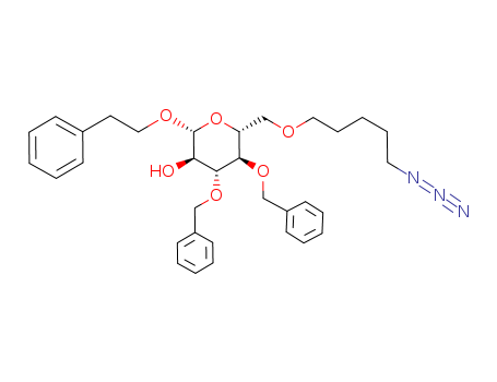 (2R,3R,4R,5R,6R)-6-(5-Azido-pentyloxymethyl)-4,5-bis-benzyloxy-2-phenethyloxy-tetrahydro-pyran-3-ol(850249-65-9)
