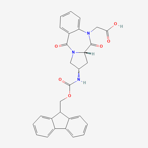 - Synonyms:2-[(6aS,8S)-8-(9H-fluoren-9-ylmethoxycarbonylamino)-6,11-dioxo-6a,7,8,9-tetrahydropyrrolo[2,1-c][1,4]benzodiazepin-5-yl]acetic acid;(2S,11aS)-Fmoc-2-amino-10-carboxymethyl-1,2,3,11a-tetrahydro-10H-pyrrolo[2,1-c][1,4]-benzodiazepine-5,11-dione;182624-46-0;DTXSID301100898;MFCD06656486;(2S,11aS)-2-[[(9H-Fluoren-9-ylmethoxy)carbonyl]amino]-2,3,11,11a-tetrahydro-5,11-dioxo-1H-pyrrolo[2,1-c][1,4]benzodiazepine-10(5H)-acetic acid;1219953-65-7