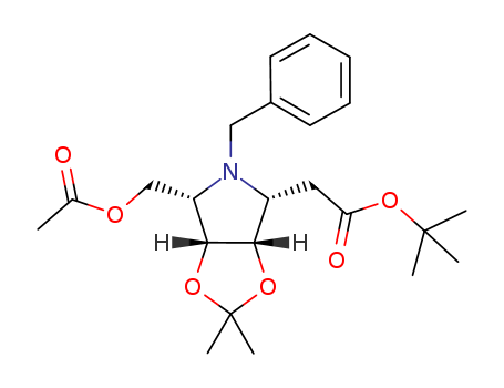 (2S,3R,4S,5R)-N(1)-benzyl-2-acetoxymethyl-3,4-O-isopropylidene-5-(tert-butoxycarbonylmethyl)pyrrolidine(1169755-33-2)