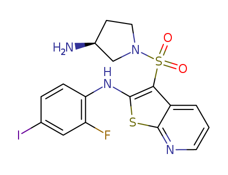 (3-{[(3S)-3-aminopyrrolidin-1-yl]sulfonyl}thieno[2,3-b]pyridin-2-yl)(2-fluoro-4-iodophenyl)amine(1105070-90-3)
