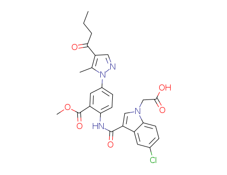 - Synonyms:(3-{[4-((4-butyryl-5-methyl-1H-pyrazol-1-yl)-2-methoxycarbonyl)phenyl]carbamoyl}-5-chloro-1H-indol-1-yl)acetic acid