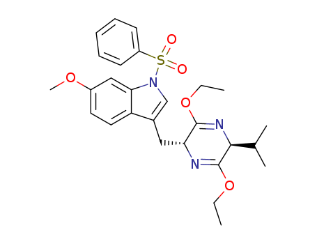 - Name: (3R,6S)-3-<1-(benzenesulfonyl-6-methoxy)-3-indoyl>methyl-3,6-dihydro-6-isopropyl-2,5-diethoxypyrazine