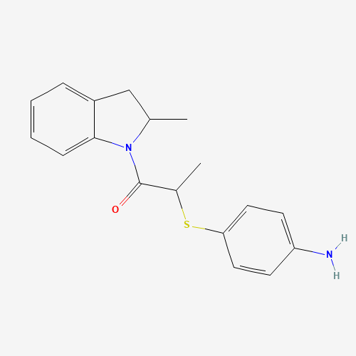 - Synonyms:(4-{[1-methyl-2-(2-methyl-2,3-dihydro-1H-indol-1-yl)-2-oxoethyl]thio}phenyl)amine;931292-74-9;2-(4-aminophenyl)sulfanyl-1-(2-methyl-2,3-dihydroindol-1-yl)propan-1-one;AKOS004044795