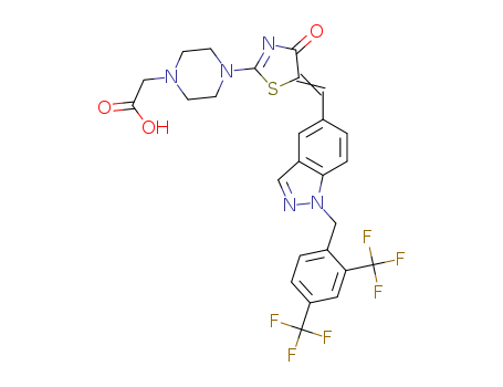- Name: (4-{5-[1-(2,4-Bis-trifluoromethyl-benzyl)-1H-indazol-5-ylmethylene]-4-oxo-4,5-dihydro-thiazol-2-yl}-piperazin-1-yl)-acetic acid