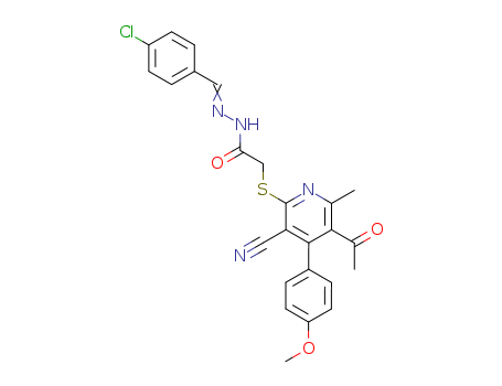 - Synonyms:[5-Acetyl-3-cyano-4-(4-methoxy-phenyl)-6-methyl-pyridin-2-ylsulfanyl]-acetic acid [1-(4-chloro-phenyl)-meth-(E)-ylidene]-hydrazide