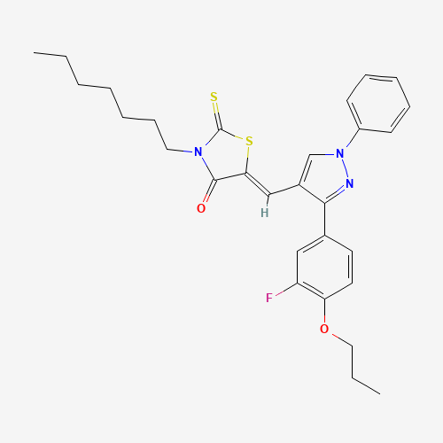 (5Z)-5-{[3-(3-Fluoro-4-propoxyphenyl)-1-phenyl-1H-pyrazol-4-YL]methylene}-3-heptyl-2-thioxo-1,3-thiazolidin-4-one
