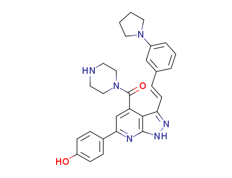 - Name: {6-(4-hydroxy-phenyl)-3-[(E)-2-(3-pyrrolidin-1-yl-phenyl)-vinyl]-1H-pyrazolo[3,4-b]pyridin-4-yl}-piperazin-1-yl-methanone