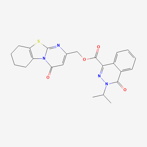 - Synonyms:DTXSID801102837;HMS1737C19;AKOS034420466;Z51277834;(6,7,8,9-Tetrahydro-4-oxo-4H-pyrimido[2,1-b]benzothiazol-2-yl)methyl 3,4-dihydro-3-(1-methylethyl)-4-oxo-1-phthalazinecarboxylate;877964-75-5