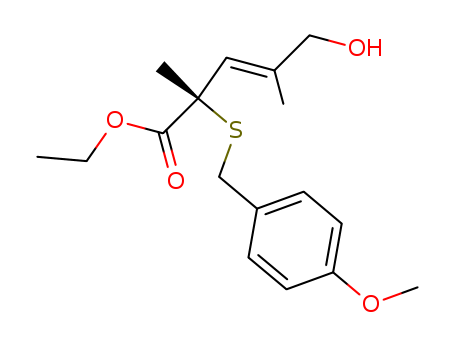 - Name: (E)-(S)-5-Hydroxy-2-(4-methoxy-benzylsulfanyl)-2,4-dimethyl-pent-3-enoic acid ethyl ester