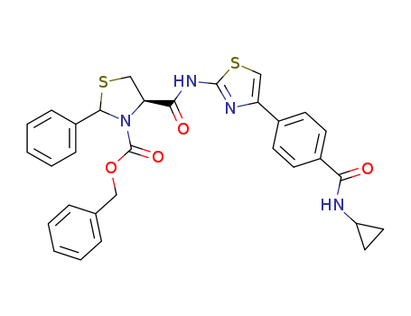 - Synonyms:(R)-4-[4-(4-cyclopropylcarbamoyl-phenyl)-thiazol-2-ylcarbamoyl]-2-phenyl-thiazolidine-3-carboxylic acid benzyl ester