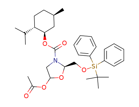 (R)-5-Acetoxy-2-(tert-butyl-diphenyl-silanyloxymethyl)-oxazolidine-3-carboxylic acid (1R,2S,5R)-2-isopropyl-5-methyl-cyclohexyl ester(204977-63-9)
