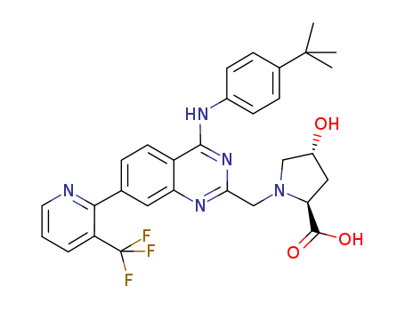 (R,S)-1-[4-(4-tert-butyl-phenylamino)-7-(3-trifluoromethyl-pyridin-2-yl)-quinazolin-2-ylmethyl]-4-hydroxy-pyrrolidine-2-carboxylic acid(714223-66-2)