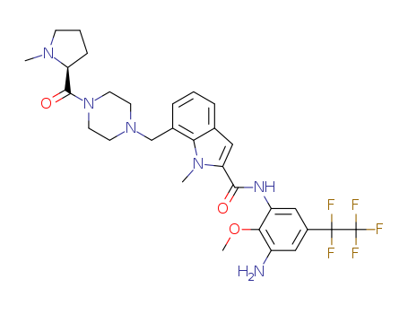 - Synonyms:(S)-1-methyl-7-[4-(1-methyl-pyrrolidine-2-carbonyl)-piperazin-1-ylmethyl]-1H-indole-2-carboxylic acid-(3-amino-2-methoxy-5-pentafluoroethyl-phenyl)-amide