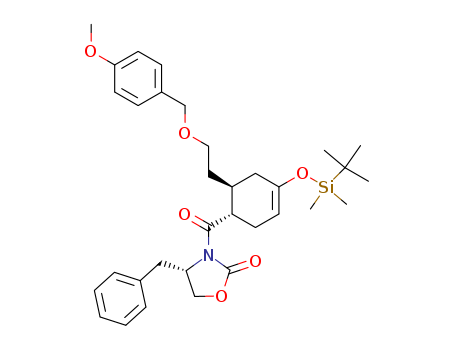 (S)-4-Benzyl-3-{(1S,6S)-4-(tert-butyl-dimethyl-silanyloxy)-6-[2-(4-methoxy-benzyloxy)-ethyl]-cyclohex-3-enecarbonyl}-oxazolidin-2-one(565436-17-1)