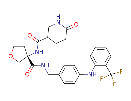 (S)-6-oxo-piperidine-3-carboxylic acid {3-[4-(2-trifluoromethyl-phenylamino)-benzylcarbamoyl]-tetrahydrofuran-3-yl}-amide(1242452-44-3)