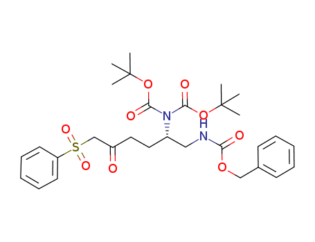 - Synonyms:benzyl (S)-2-(bis(tert-butoxycarbonyl)amino)-5-oxo-6-(phenylsulfonyl)hexylcarbamate
