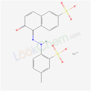 - Synonyms:2-Naphthalenesulfonic acid,6-hydroxy-5-((4-methyl-2-sulfophenyl)azo)-,calcium salt (1:1);2-Naphthalenesulfonic acid,6-hydroxy-5-((4-methyl-2-sulfophenyl)azo)-,calcium salt (1:1) 7-Benzothiazolesulfonic acid,2-(4-((2-(cyanoimino)hexahydro-4,6-dioxo-5-pyrimidinyl)azo)phenyl)-6-methyl-,compd. with 2,2',2''-nitrilotris(ethanol) (1:1);2-Naphthalenesulfonic acid,6-hydroxy-5-(2-(4-methyl-2-sulfophenyl)diazenyl)-,calcium salt (1:1);
