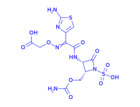 - Synonyms:Acetic acid, [[[2-[[2-[[(aminocarbonyl)oxy]methyl]-4-oxo-1-sulfo-3-azetidinyl]amino]-1-(2-amino-4-thiazolyl)-2-oxoethylidene]amino]oxy]-, [2伪,3伪(Z)]-