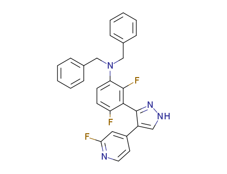 - Synonyms:dibenzyl-{2,4-difluoro-3-[4-(2-fluoro-pyridin-4-yl)-1H-pyrazol-3-yl]-phenyl}-amine