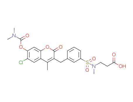 - Name: dimethylcarbamic acid 2-oxo-2H-3-(3-(carboxyethyl)(methyl)aminosulfonylbenzyl)4-methyl-6-chloro-1-benzopyran-7-yl ester