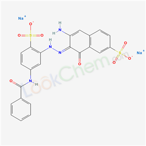 - Synonyms:EINECS 253-086-9;Disodium 6-amino-5-((5-(benzoylamino)-2-sulphonatophenyl)azo)-4-hydroxynaphthalene-2-sulphonate;2-Naphthalenesulfonic acid,6-amino-5-((5-benzamido-2-sulfophenyl)azo)-4-hydroxy-,disodium salt;2-Naphthalenesulfonic acid,6-amino-5-(2-(5-(benzoylamino)-2-sulfophenyl)diazenyl)-4-hydroxy-,sodium salt (1:2);2-Naphthalenesulfonic acid,6-amino-5-((5-(benzoylamino)-2-sulfophenyl)azo)-4-hydroxy-,disodium salt;