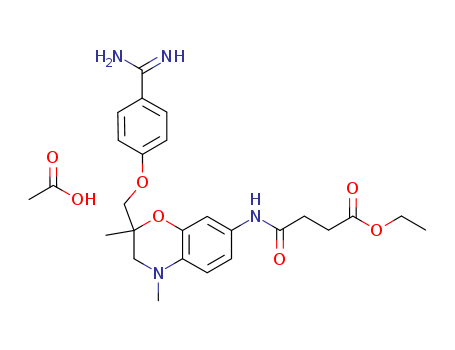- Synonyms:ethyl 4-{2-[(4-carbamimidoylphenoxy)methyl]-2,4-dimethyl-3,4-dihydro-2H-1,4-benzoxazin-7-ylamino}-4-oxobutanoate acetate