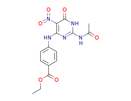 - Synonyms:ethyl 4-[[2-(acetylamino)-5-nitro-6-oxo-1,6-dihydro-4-pyrimidinyl]amino]benzoate