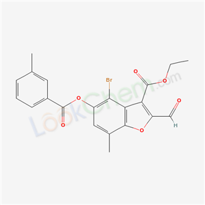 - 6176-66-5/ethyl 4-bromo-2-formyl-7-methyl-5-[(3-methylbenzoyl)oxy]-1-benzofuran-3-carboxylate