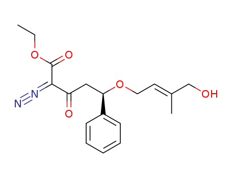 - Synonyms:ethyl (R)-2-diazo-5-[(2E)-3-methyl-4-hydroxybut-2-enyloxy]-3-oxo-5-phenylpentanoate