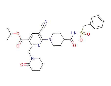 - Synonyms:isopropyl 6-{4-[(benzylsulfonyl)carbamoyl]piperidin-1-yl}-5-cyano-2-[(2-oxopiperidin-1-yl)methyl]nicotinate