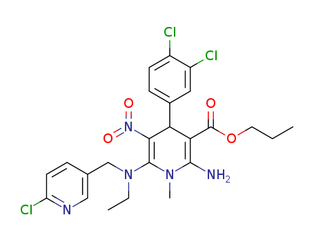 - Synonyms:propyl 2-amino-6-[(6-chloro-3-pyridinylmethyl)ethylamino]-4-(3,4-dichlorophenyl)-1,4-dihydro-1-methyl-5-nitro-3-pyridinecarboxylate