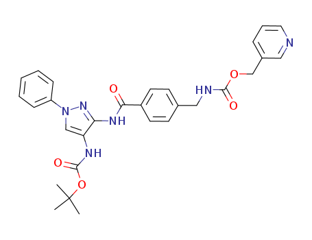 - Synonyms:pyridin-3-ylmethyl {4-[({4-[(tert-butoxycarbonyl)amino]-1-phenyl-1H-pyrazol-3-yl}amino)carbonyl]benzyl}carbamate