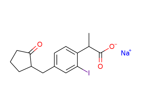 - Synonyms:sodium 2-{2-iodo-4-[(2-oxocyclopentyl)methyl]phenyl}propanoate