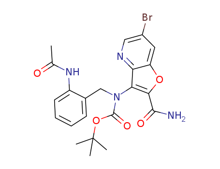 - Synonyms:tert-butyl 2-(acetylamino)benzyl[2-(aminocarbonyl)-6-bromo-furo[3,2-b]pyridin-3-yl]carbamate