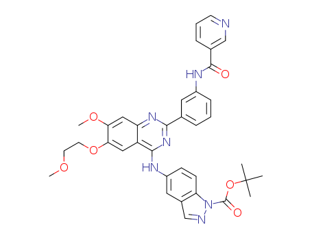 - Synonyms:tert-butyl 5-(7-methoxy-6-(2-methoxyethoxy)-2-(3-(nicotinamido)phenyl)quinazolin-4-ylamino)-1H-indazole-1-carboxylate